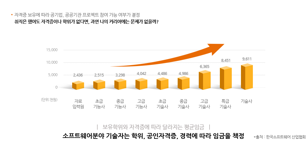 IT 및 디자인 분야의 특성 상 채용 시 기본적으로 실무 능력을 함양한 관련 자격증 소지자, 전공 학위자를 우대합니다. 최근 기업들이 학력 기준 철폐라는 기준을 내세우고 있으나, 대부분 유수 기업들은 학위 미취득자 보다는 취득자를, 비 전공자 보다는 전공자를 우대하여 채용하고 있으며 이는 채용 이후 연봉협상, 진급 등에도 계속 영향을 미칩니다.- 01채용 시 전공자 우대